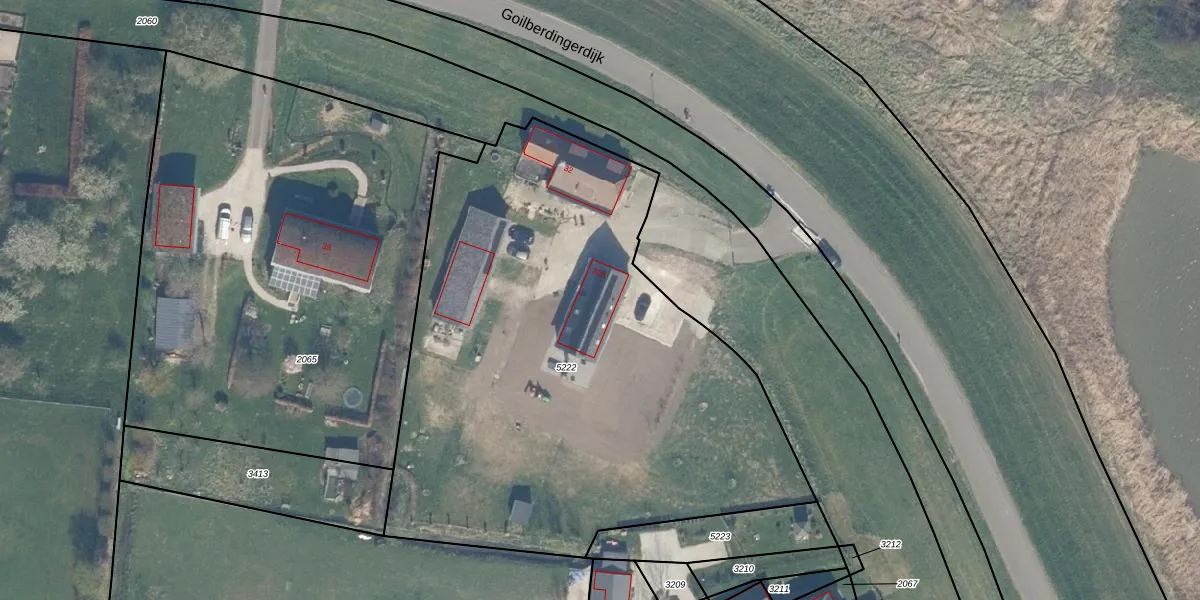 Het perceel waarop Goilberdingerdijk 32-a staat heeft een oppervlakte van 3270 m². Dit is een zeer groot perceel. De perceeloppervlakte wordt geregistreerd door het Kadaster. Gedetailleerde informatie over de maten van dit perceel kunt u vinden in het rapport Kadastrale kaart met maatvoering van Goilberdingerdijk 32-a.