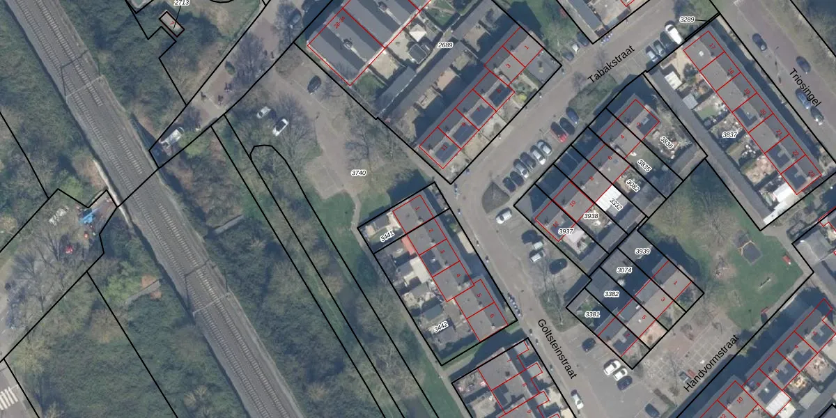 Gebruik de zoekbalk of klik op een perceel voor informatie over de adressen binnen dit perceel.