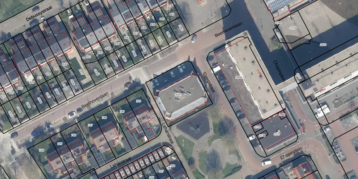 Het perceel waarop Griegstraat 9 staat heeft een oppervlakte van 773 m². Dit is een groot perceel. De perceeloppervlakte wordt geregistreerd door het Kadaster. Gedetailleerde informatie over de maten van dit perceel kunt u vinden in het rapport Kadastrale kaart met maatvoering van Griegstraat 9.
