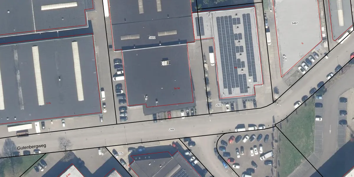 Het perceel waarop Gutenbergweg 5-c staat heeft een oppervlakte van 4280 m². Dit is een zeer groot perceel. De perceeloppervlakte wordt geregistreerd door het Kadaster. Gedetailleerde informatie over de maten van dit perceel kunt u vinden in het rapport Kadastrale kaart met maatvoering van Gutenbergweg 5-c.