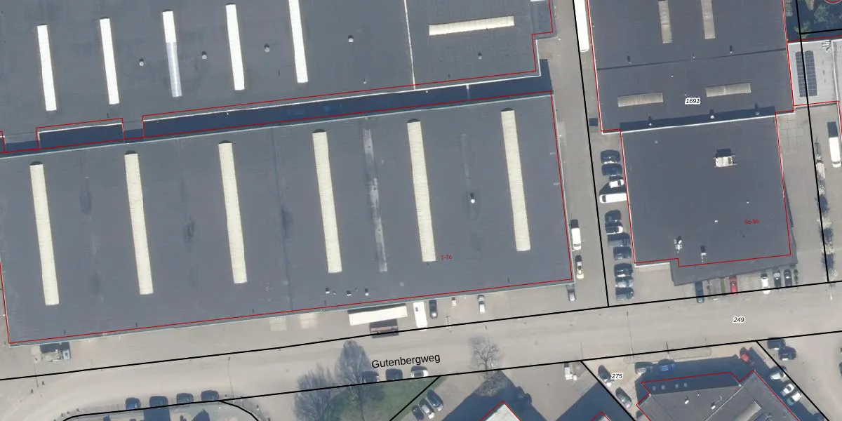 Het perceel waarop Gutenbergweg 7-a staat heeft een oppervlakte van 2,3 ha. Dit is een zeer groot perceel. De perceeloppervlakte wordt geregistreerd door het Kadaster. Gedetailleerde informatie over de maten van dit perceel kunt u vinden in het rapport Kadastrale kaart met maatvoering van Gutenbergweg 7-a.