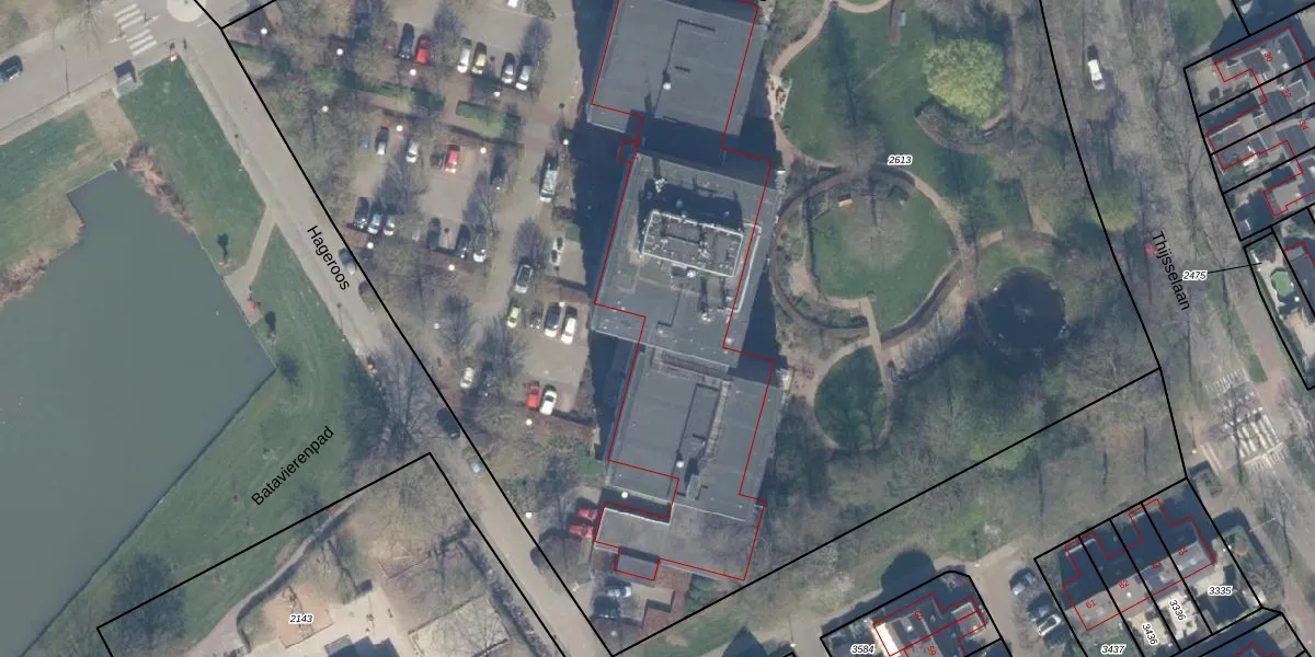 Het adres ligt op het perceel CLB00-K-2613, dat zich in de kadastrale gemeente Culemborg bevindt. De oppervlakte van het perceel is 1,1 ha. Dat is groter dan gemiddeld in Culemborg, waar de gemiddelde perceeloppervlakte op 2281,59 m² ligt. Het grootste perceel in de kadastrale gemeente is 37,0 ha. Het kleinste perceel heeft een oppervlakte van 0 m². Er zijn 127 adressen aanwezig op het perceel. In de Basisregistratie Kadaster (BRK) werden de grenzen van het perceel geregistreerd op 27-09-2005.