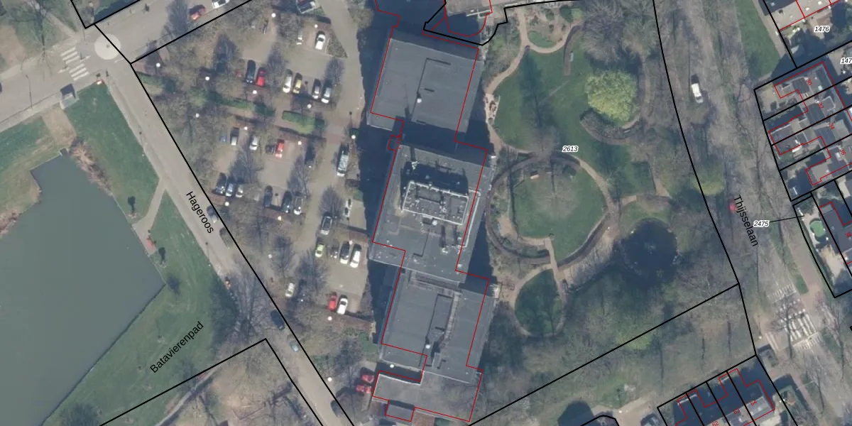 Het adres ligt op het perceel CLB00-K-2613, dat zich in de kadastrale gemeente Culemborg bevindt. De oppervlakte van het perceel is 1,1 ha. Dat is groter dan gemiddeld in Culemborg, waar de gemiddelde perceeloppervlakte op 2281,59 m² ligt. Het grootste perceel in de kadastrale gemeente is 37,0 ha. Het kleinste perceel heeft een oppervlakte van 0 m². Op het perceel liggen in totaal 127 adressen. De huidige grenzen van het perceel zijn digitaal in de Basisregistratie Kadaster (BRK) geregistreerd op 27-09-2005.