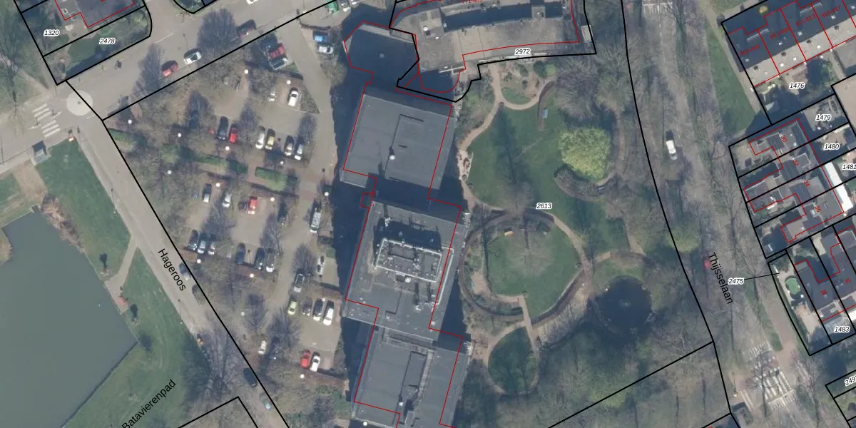Het adres ligt op het perceel CLB00-K-2613, dat zich in de kadastrale gemeente Culemborg bevindt. De oppervlakte van het perceel is 1,1 ha. Dat is groter dan gemiddeld in Culemborg, waar de gemiddelde perceeloppervlakte op 2281,59 m² ligt. Het kleinste perceel in de kadastrale gemeente is 0 m² groot. De grootste perceeloppervlakte is 37,0 ha. Op het perceel zijn 127 adressen aanwezig. De laatste wijziging in het de Basisregistratie Kadaster (BRK) was op 27-09-2005.