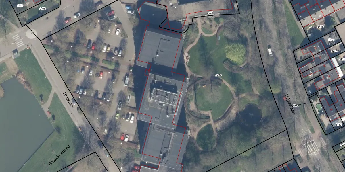 Het adres ligt op het perceel CLB00-K-2613, dat zich in de kadastrale gemeente Culemborg bevindt. De oppervlakte van het perceel is 1,1 ha. Dat is groter dan gemiddeld in Culemborg, waar de gemiddelde perceeloppervlakte op 2281,59 m² ligt. Het kleinste perceel in de kadastrale gemeente is 0 m² groot. De grootste perceeloppervlakte is 37,0 ha. Op het perceel zijn 127 adressen aanwezig. De huidige grenzen van het perceel zijn digitaal in de Basisregistratie Kadaster (BRK) geregistreerd op 27-09-2005.
