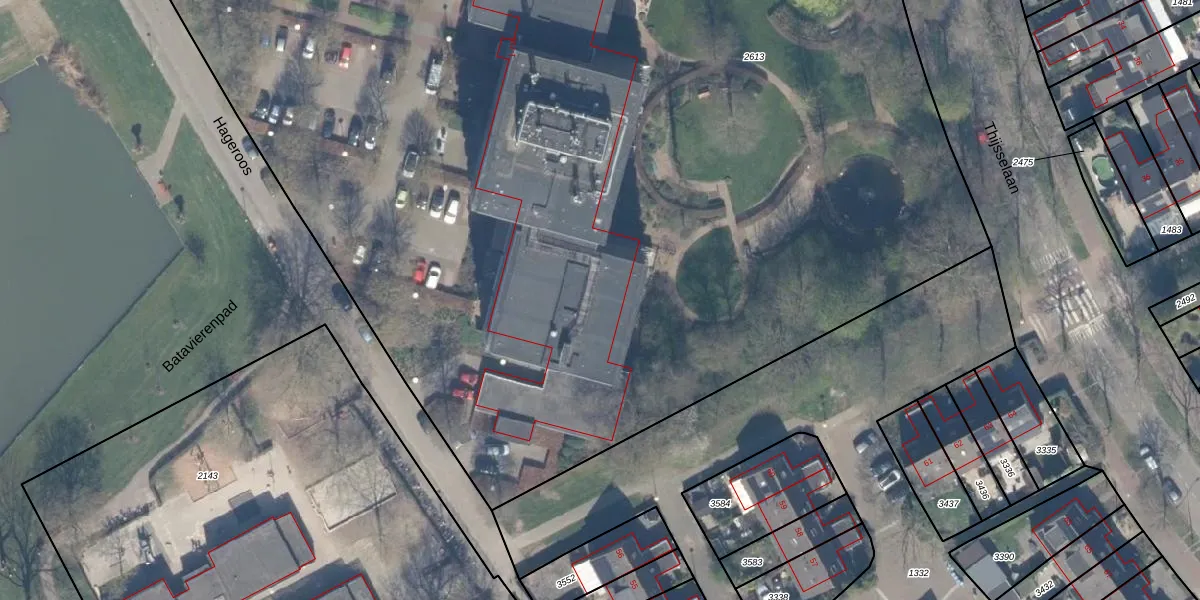 Het adres ligt op het perceel CLB00-K-2613, dat zich in de kadastrale gemeente Culemborg bevindt. De oppervlakte van het perceel is 1,1 ha. Dat is groter dan gemiddeld in Culemborg, waar de gemiddelde perceeloppervlakte op 2281,59 m² ligt. Het kleinste perceel in de kadastrale gemeente is 0 m² groot. De grootste perceeloppervlakte is 37,0 ha. Er zijn 127 adressen aanwezig op het perceel. In de Basisregistratie Kadaster (BRK) werden de grenzen van het perceel geregistreerd op 27-09-2005.