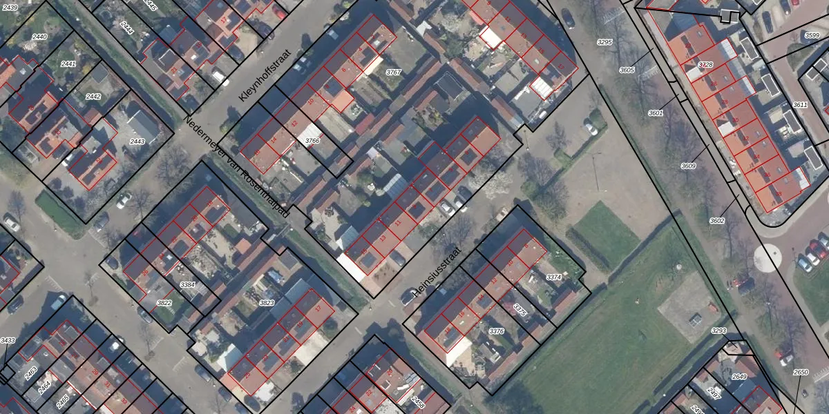 Het perceel waarop Heinsiusstraat 9 staat heeft een oppervlakte van 3941 m². Dit is een zeer groot perceel. De perceeloppervlakte wordt geregistreerd door het Kadaster. Gedetailleerde informatie over de maten van dit perceel kunt u vinden in het rapport Kadastrale kaart met maatvoering van Heinsiusstraat 9.