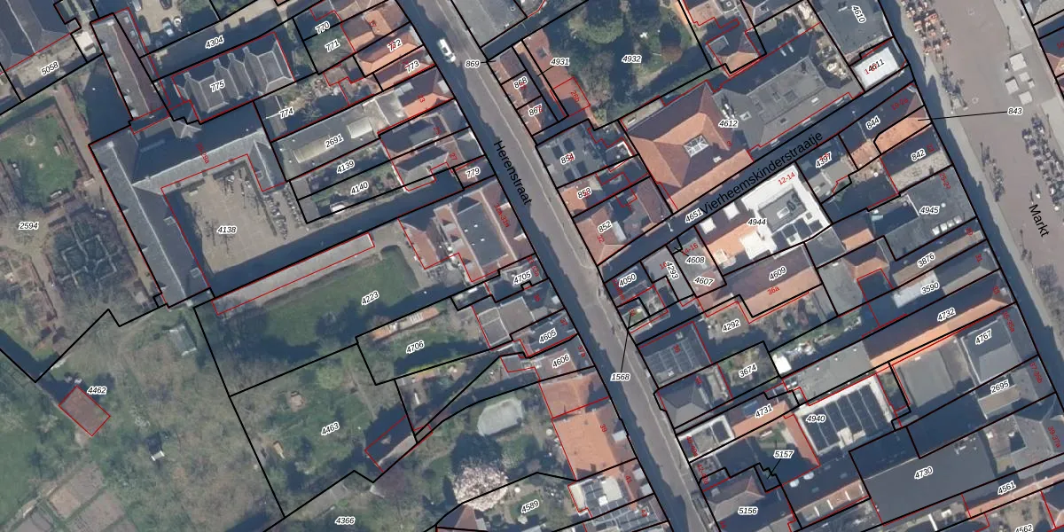 Het perceel waarop Herenstraat 33 staat heeft een oppervlakte van 73 m². Dit is een klein perceel. De perceeloppervlakte wordt geregistreerd door het Kadaster. Gedetailleerde informatie over de maten van dit perceel kunt u vinden in het rapport Kadastrale kaart met maatvoering van Herenstraat 33.