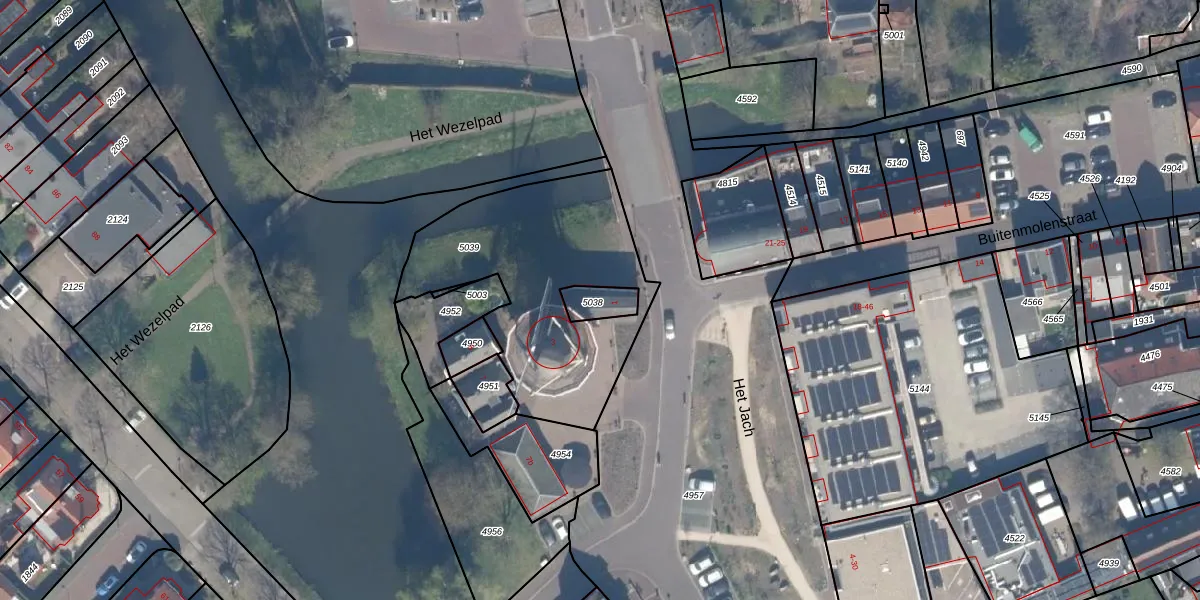 Het perceel waarop Het Jach 1 staat heeft een oppervlakte van 65 m². Dit is een klein perceel. De perceeloppervlakte wordt geregistreerd door het Kadaster. Gedetailleerde informatie over de maten van dit perceel kunt u vinden in het rapport Kadastrale kaart met maatvoering van Het Jach 1.