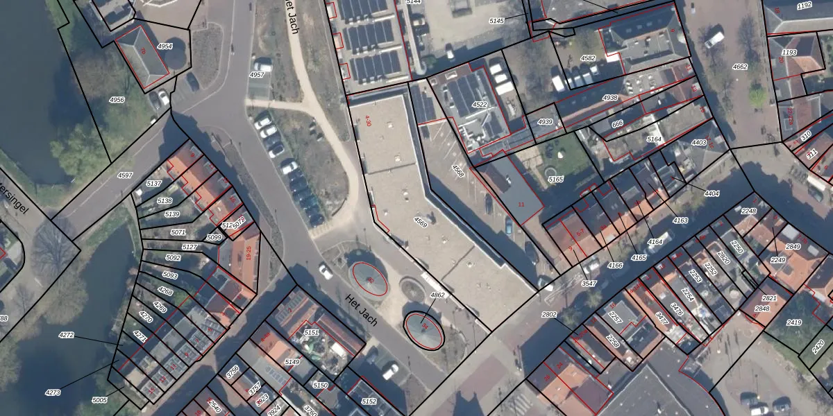 Het perceel waarop Het Jach 20 staat heeft een oppervlakte van 987 m². Dit is een groot perceel. De perceeloppervlakte wordt geregistreerd door het Kadaster. Gedetailleerde informatie over de maten van dit perceel kunt u vinden in het rapport Kadastrale kaart met maatvoering van Het Jach 20.