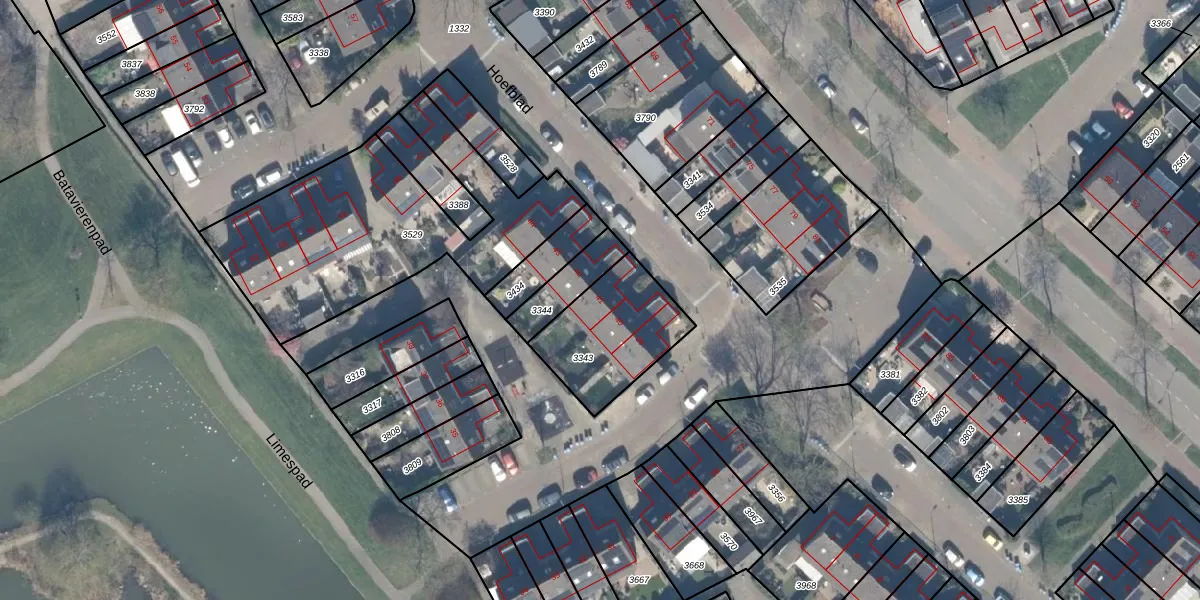 Het perceel waarop Hoefblad 41 staat heeft een oppervlakte van 382 m². Dit is een groot perceel. De perceeloppervlakte wordt geregistreerd door het Kadaster. Gedetailleerde informatie over de maten van dit perceel kunt u vinden in het rapport Kadastrale kaart met maatvoering van Hoefblad 41.