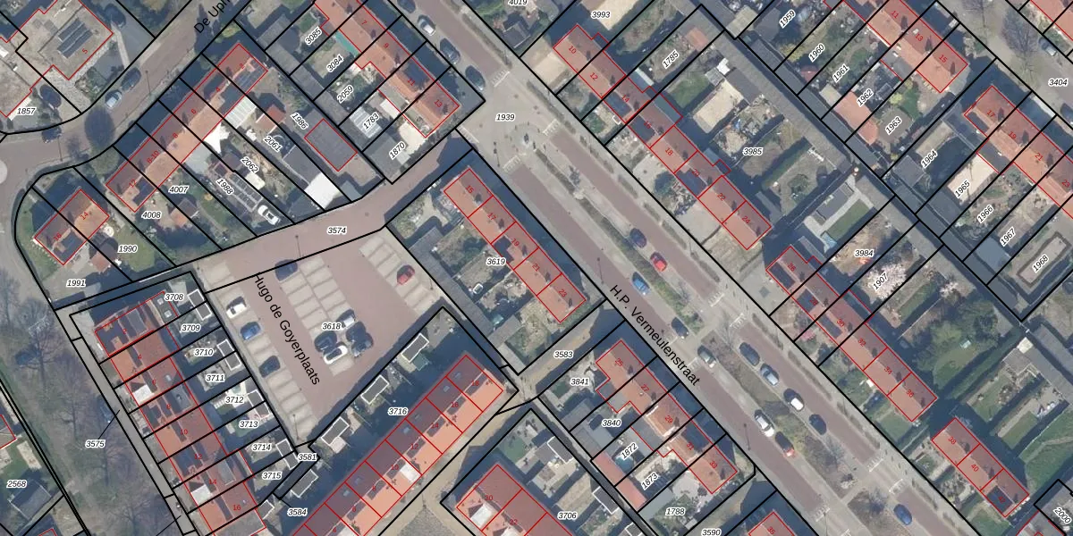 Het perceel waarop H.P. Vermeulenstraat 21 staat heeft een oppervlakte van 806 m². Dit is een groot perceel. De perceeloppervlakte wordt geregistreerd door het Kadaster. Gedetailleerde informatie over de maten van dit perceel kunt u vinden in het rapport Kadastrale kaart met maatvoering van H.P. Vermeulenstraat 21.