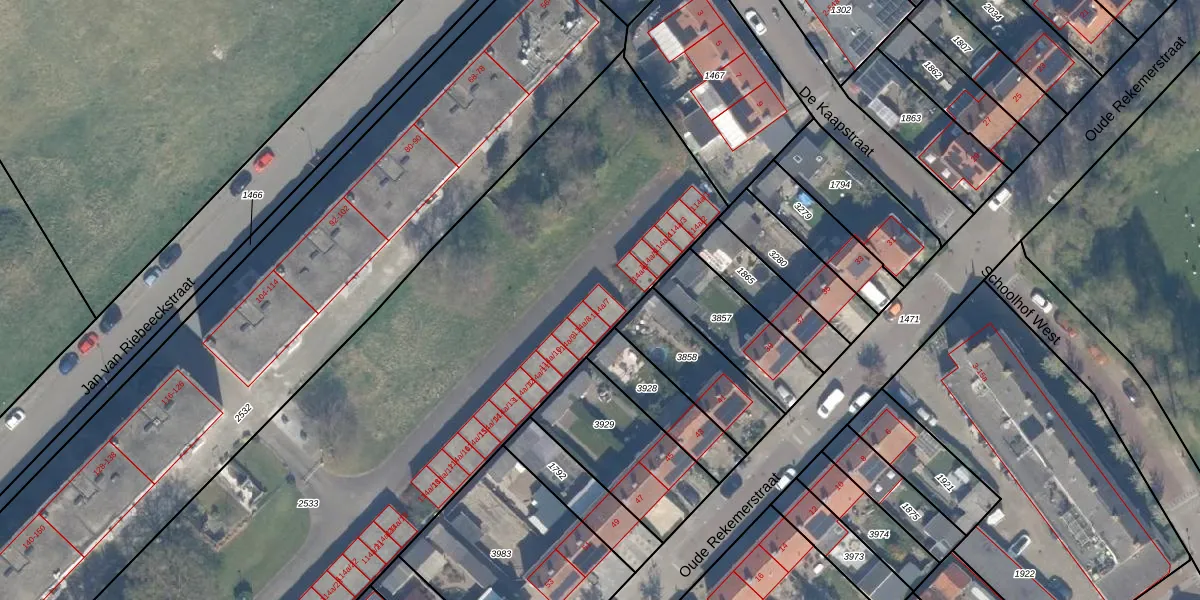 Het perceel waarop Jan van Riebeeckstraat 114-a-7 staat heeft een oppervlakte van 5404 m². Dit is een zeer groot perceel. De perceeloppervlakte wordt geregistreerd door het Kadaster. Gedetailleerde informatie over de maten van dit perceel kunt u vinden in het rapport Kadastrale kaart met maatvoering van Jan van Riebeeckstraat 114-a-7.