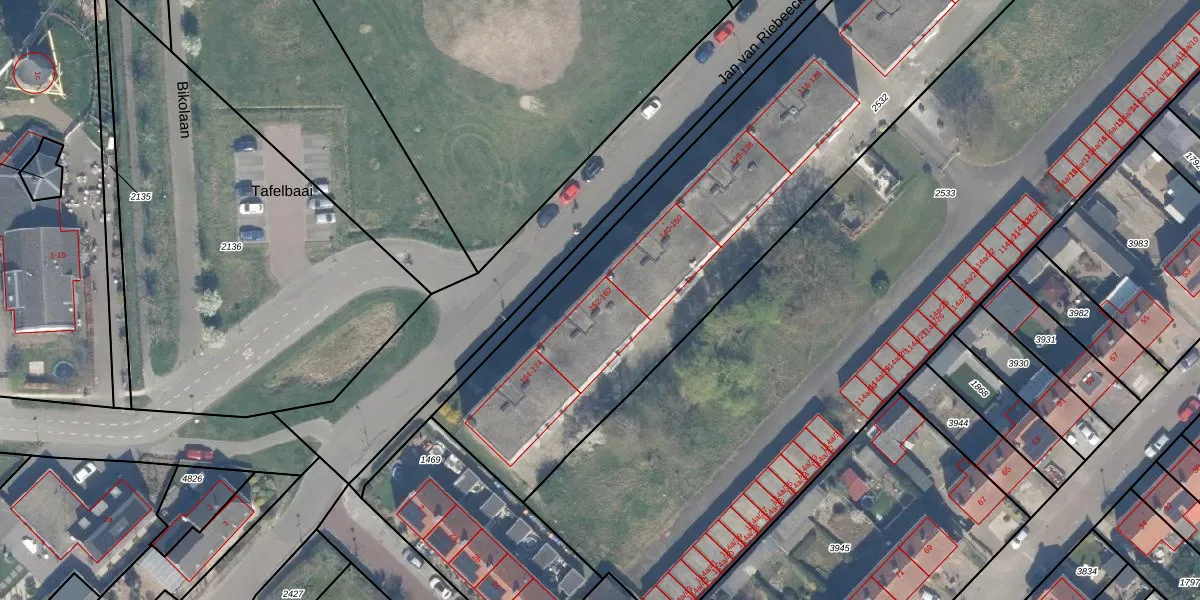 Het perceel waarop Jan van Riebeeckstraat 152 staat heeft een oppervlakte van 3815 m². Dit is een zeer groot perceel. De perceeloppervlakte wordt geregistreerd door het Kadaster. Gedetailleerde informatie over de maten van dit perceel kunt u vinden in het rapport Kadastrale kaart met maatvoering van Jan van Riebeeckstraat 152.