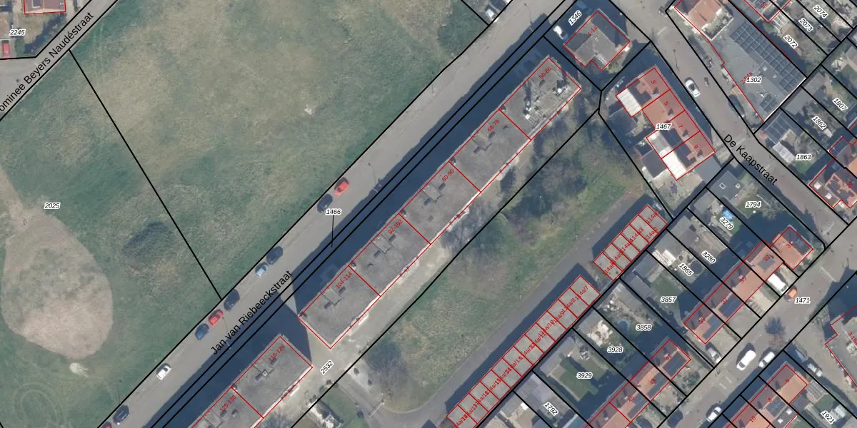 Het perceel waarop Jan van Riebeeckstraat 88 staat heeft een oppervlakte van 3815 m². Dit is een zeer groot perceel. De perceeloppervlakte wordt geregistreerd door het Kadaster. Gedetailleerde informatie over de maten van dit perceel kunt u vinden in het rapport Kadastrale kaart met maatvoering van Jan van Riebeeckstraat 88.