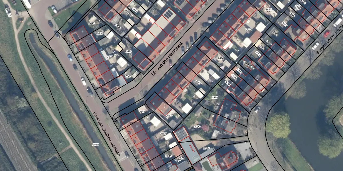 Het perceel waarop J.B. van den Hamstraat 50 staat heeft een oppervlakte van 3572 m². Dit is een zeer groot perceel. De perceeloppervlakte wordt geregistreerd door het Kadaster. Gedetailleerde informatie over de maten van dit perceel kunt u vinden in het rapport Kadastrale kaart met maatvoering van J.B. van den Hamstraat 50.