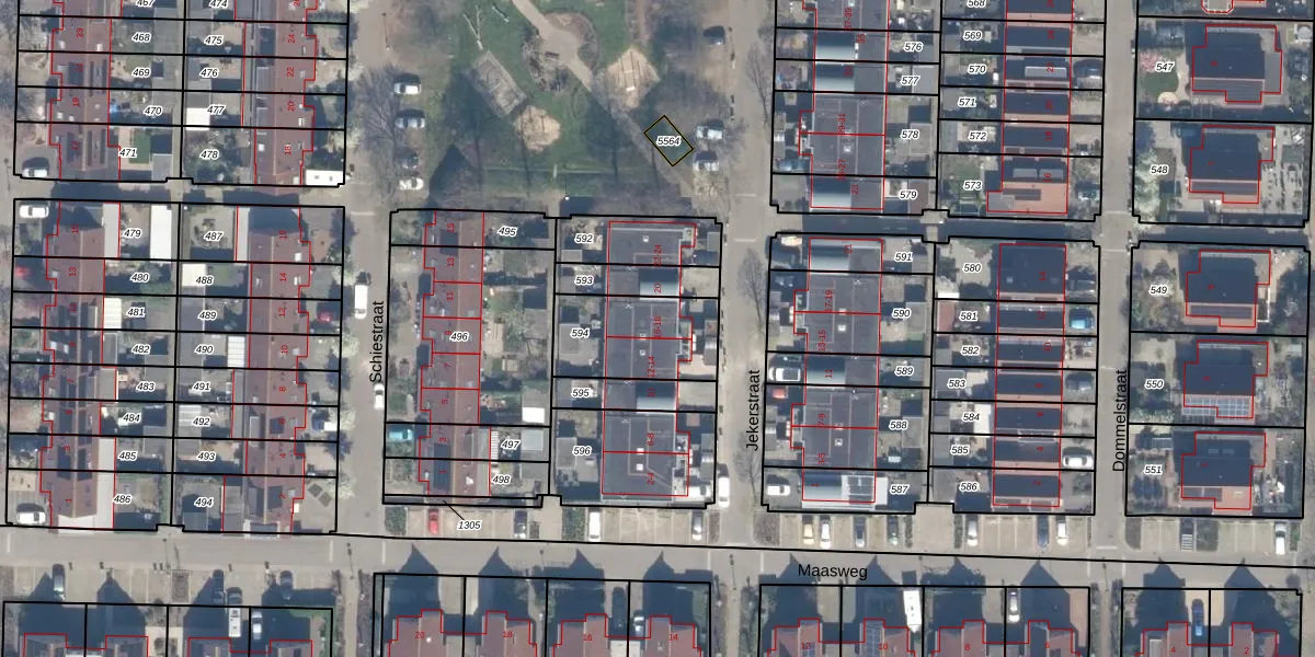 Het perceel waarop Jekerstraat 16 staat heeft een oppervlakte van 320 m². Dit is een groot perceel. De perceeloppervlakte wordt geregistreerd door het Kadaster. Gedetailleerde informatie over de maten van dit perceel kunt u vinden in het rapport Kadastrale kaart met maatvoering van Jekerstraat 16.