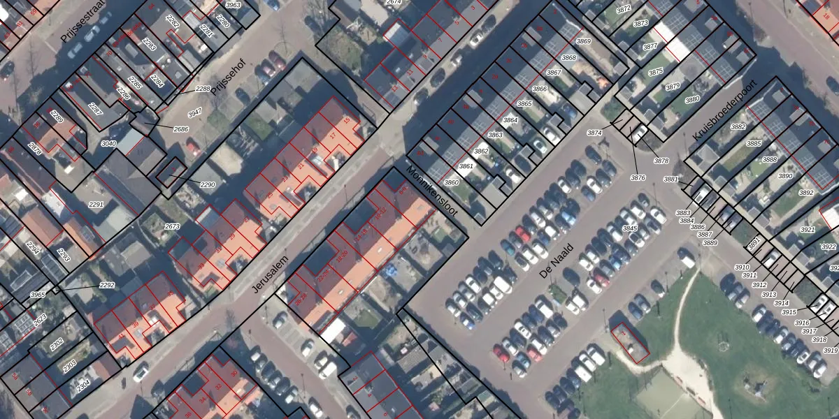 Het perceel waarop Jerusalem 6 staat heeft een oppervlakte van 3424 m². Dit is een zeer groot perceel. De perceeloppervlakte wordt geregistreerd door het Kadaster. Gedetailleerde informatie over de maten van dit perceel kunt u vinden in het rapport Kadastrale kaart met maatvoering van Jerusalem 6.