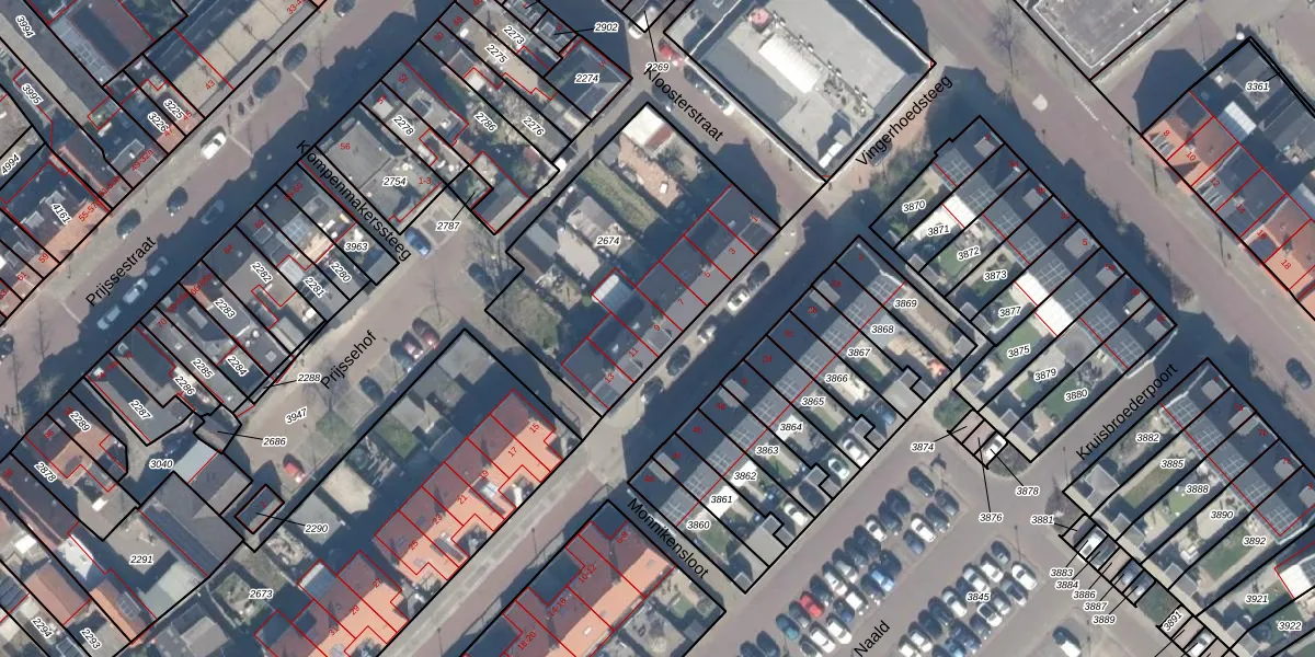 Het perceel waarop Jerusalem 9 staat heeft een oppervlakte van 1064 m². Dit is een zeer groot perceel. De perceeloppervlakte wordt geregistreerd door het Kadaster. Gedetailleerde informatie over de maten van dit perceel kunt u vinden in het rapport Kadastrale kaart met maatvoering van Jerusalem 9.