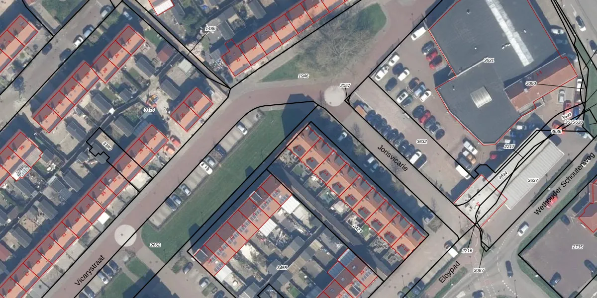 Jorisvicarie 1 is gelegen op kadastraal perceel CLB00C3423. Deze kadastrale aanduiding is uniek en wordt gebruikt door het Kadaster om eigendomsrechten en andere zakelijke rechten vast te leggen. Het perceel maakt onderdeel uit van de kadastrale gemeente Culemborg.
