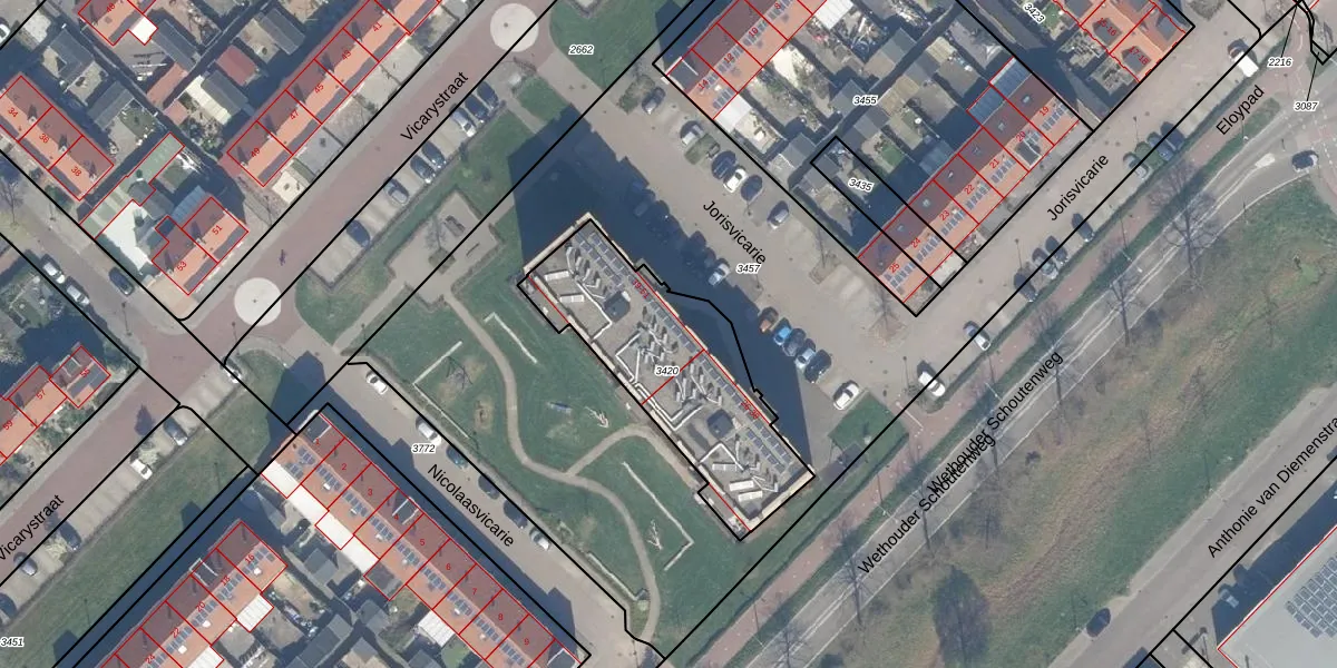 Jorisvicarie 40 is gelegen op kadastraal perceel CLB00C3420. Deze kadastrale aanduiding is uniek en wordt gebruikt door het Kadaster om eigendomsrechten en andere zakelijke rechten vast te leggen. Het perceel maakt onderdeel uit van de kadastrale gemeente Culemborg.