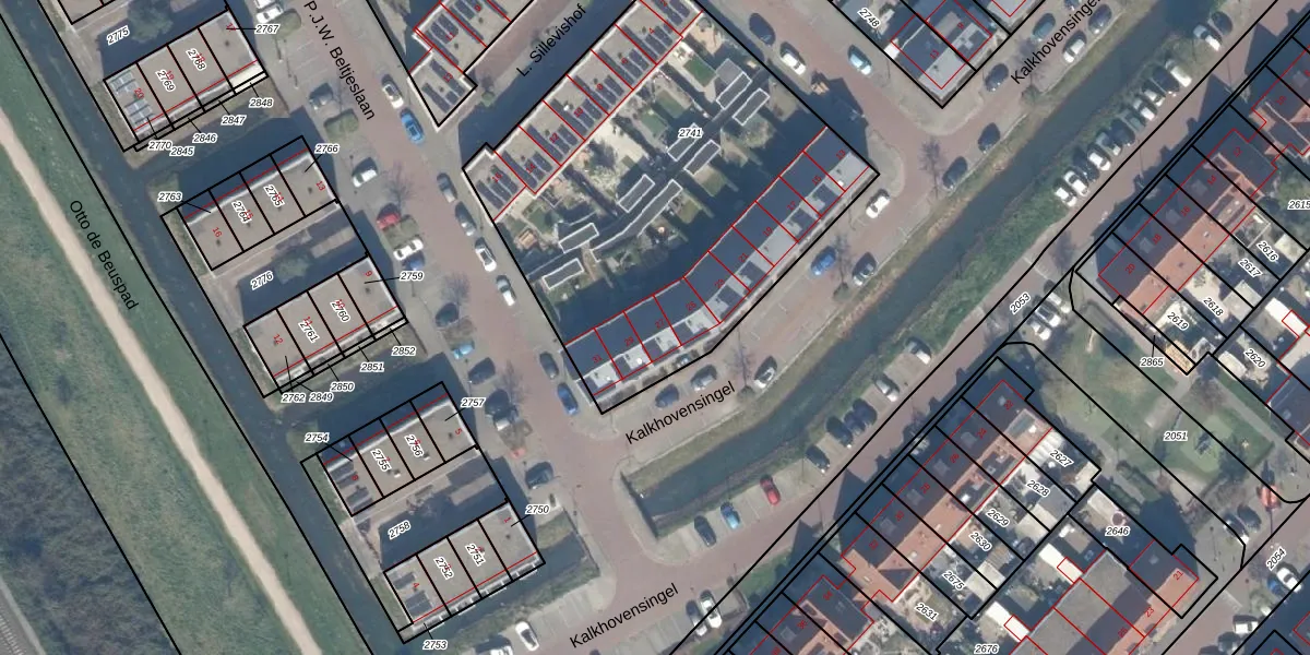 Het perceel waarop Kalkhovensingel 27 staat heeft een oppervlakte van 2245 m². Dit is een zeer groot perceel. De perceeloppervlakte wordt geregistreerd door het Kadaster. Gedetailleerde informatie over de maten van dit perceel kunt u vinden in het rapport Kadastrale kaart met maatvoering van Kalkhovensingel 27.