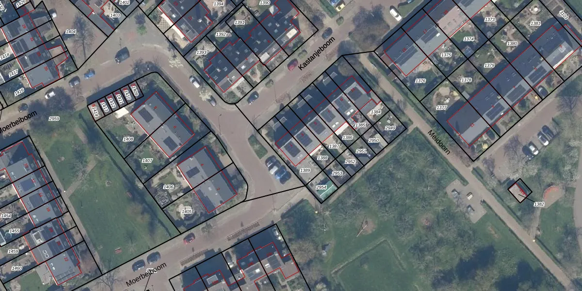Het perceel waarop Kastanjeboom 1 staat heeft een oppervlakte van 197 m². Dit is een middelgroot perceel. De perceeloppervlakte wordt geregistreerd door het Kadaster. Gedetailleerde informatie over de maten van dit perceel kunt u vinden in het rapport Kadastrale kaart met maatvoering van Kastanjeboom 1.