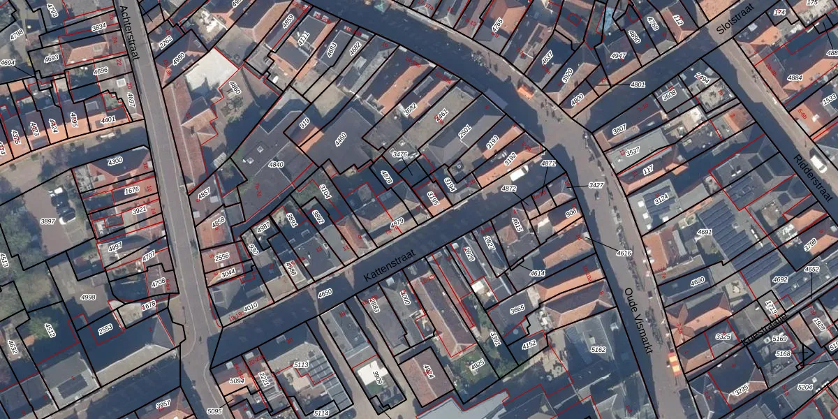 Kattenstraat 5 is gelegen op kadastraal perceel CLB00I4878. Deze kadastrale aanduiding is uniek en wordt gebruikt door het Kadaster om eigendomsrechten en andere zakelijke rechten vast te leggen. Het perceel maakt onderdeel uit van de kadastrale gemeente Culemborg.
