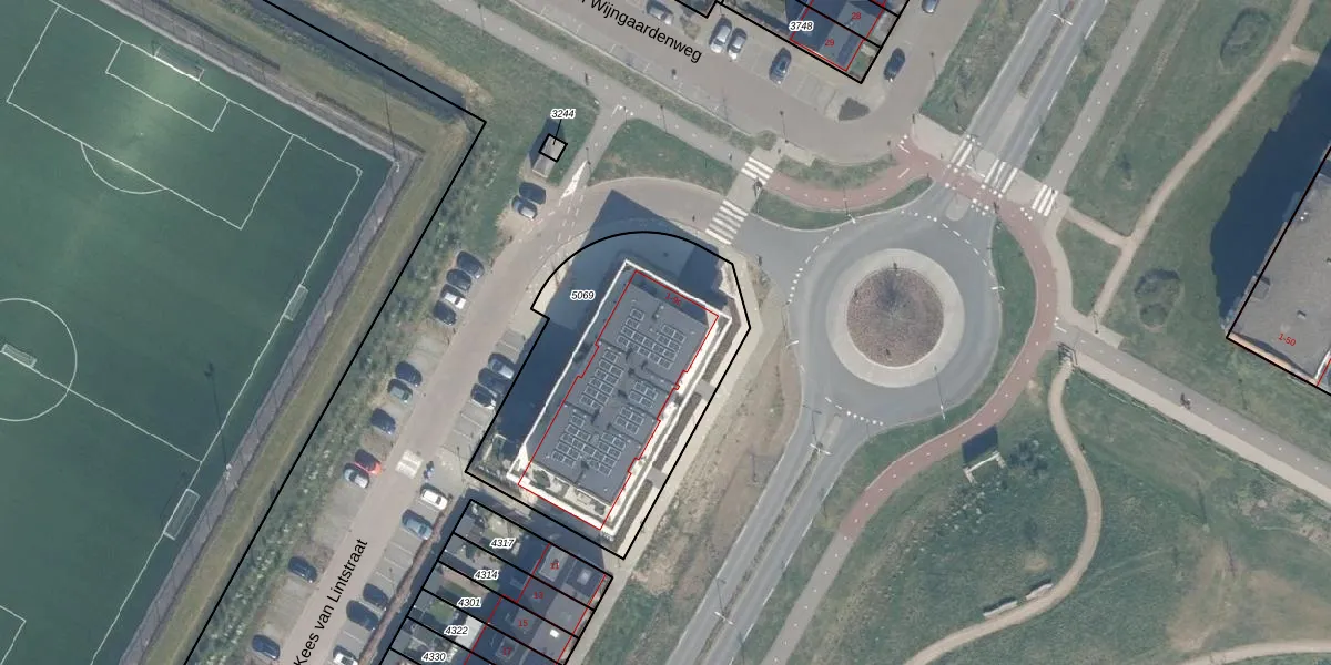 Het perceel waarop Kees van Lintstraat 5-d staat heeft een oppervlakte van 1240 m². Dit is een zeer groot perceel. De perceeloppervlakte wordt geregistreerd door het Kadaster. Gedetailleerde informatie over de maten van dit perceel kunt u vinden in het rapport Kadastrale kaart met maatvoering van Kees van Lintstraat 5-d.