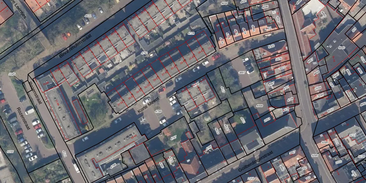 Het perceel waarop Korte Meent 10 staat heeft een oppervlakte van 330 m². Dit is een groot perceel. De perceeloppervlakte wordt geregistreerd door het Kadaster. Gedetailleerde informatie over de maten van dit perceel kunt u vinden in het rapport Kadastrale kaart met maatvoering van Korte Meent 10.