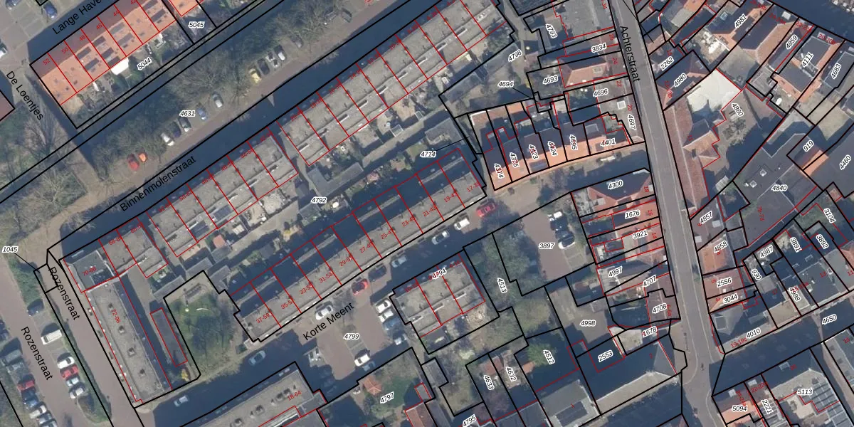 Het perceel waarop Korte Meent 21 staat heeft een oppervlakte van 4065 m². Dit is een zeer groot perceel. De perceeloppervlakte wordt geregistreerd door het Kadaster. Gedetailleerde informatie over de maten van dit perceel kunt u vinden in het rapport Kadastrale kaart met maatvoering van Korte Meent 21.