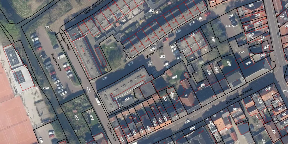 Het perceel waarop Korte Meent 34 staat heeft een oppervlakte van 680 m². Dit is een groot perceel. De perceeloppervlakte wordt geregistreerd door het Kadaster. Gedetailleerde informatie over de maten van dit perceel kunt u vinden in het rapport Kadastrale kaart met maatvoering van Korte Meent 34.