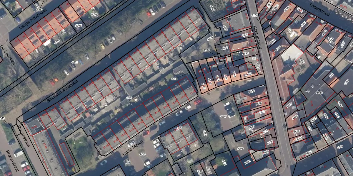 Het perceel waarop Korte Meent 41 staat heeft een oppervlakte van 4065 m². Dit is een zeer groot perceel. De perceeloppervlakte wordt geregistreerd door het Kadaster. Gedetailleerde informatie over de maten van dit perceel kunt u vinden in het rapport Kadastrale kaart met maatvoering van Korte Meent 41.