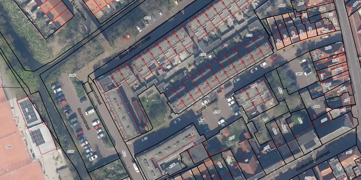 Het perceel waarop Korte Meent 57 staat heeft een oppervlakte van 4065 m². Dit is een zeer groot perceel. De perceeloppervlakte wordt geregistreerd door het Kadaster. Gedetailleerde informatie over de maten van dit perceel kunt u vinden in het rapport Kadastrale kaart met maatvoering van Korte Meent 57.