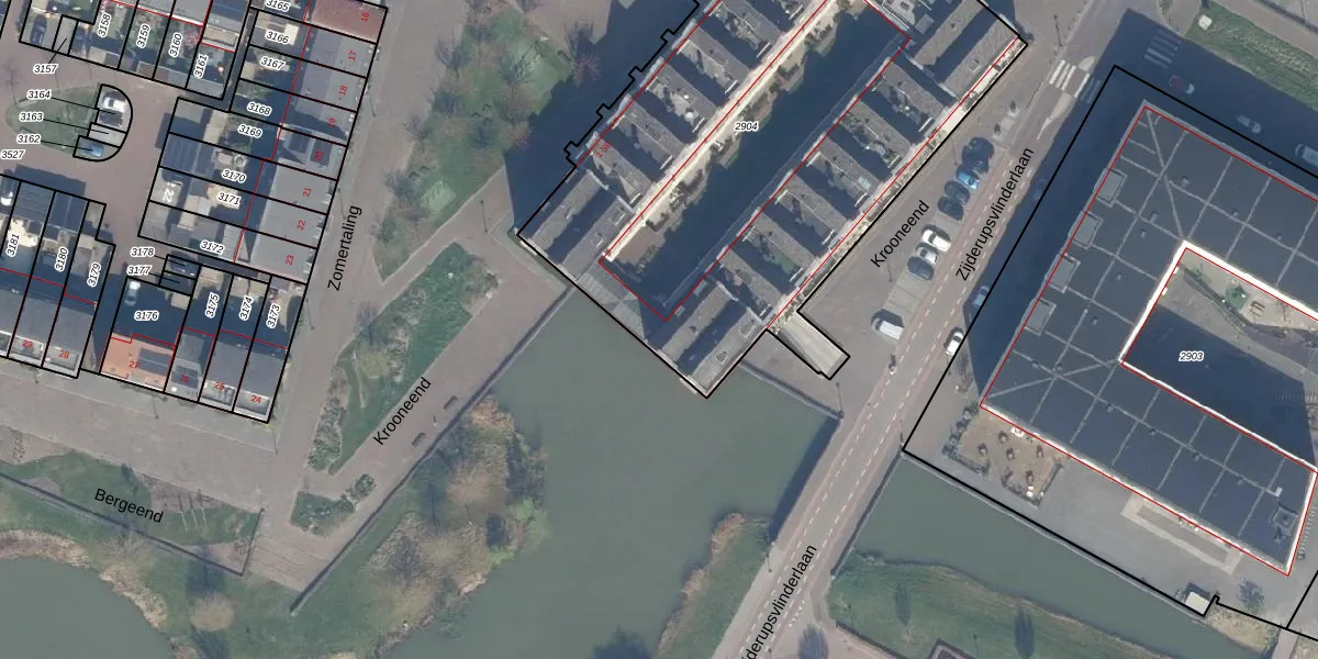Het perceel waarop Krooneend 49 staat heeft een oppervlakte van 3014 m². Dit is een zeer groot perceel. De perceeloppervlakte wordt geregistreerd door het Kadaster. Gedetailleerde informatie over de maten van dit perceel kunt u vinden in het rapport Kadastrale kaart met maatvoering van Krooneend 49.