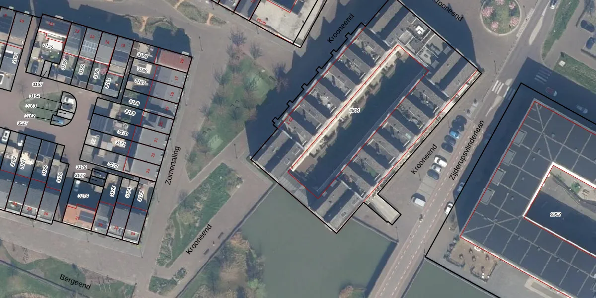 Het perceel waarop Krooneend 51 staat heeft een oppervlakte van 3014 m². Dit is een zeer groot perceel. De perceeloppervlakte wordt geregistreerd door het Kadaster. Gedetailleerde informatie over de maten van dit perceel kunt u vinden in het rapport Kadastrale kaart met maatvoering van Krooneend 51.