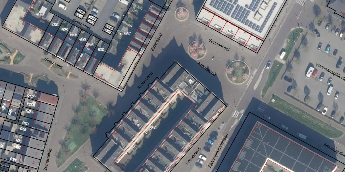 Het perceel waarop Krooneend 58 staat heeft een oppervlakte van 3014 m². Dit is een zeer groot perceel. De perceeloppervlakte wordt geregistreerd door het Kadaster. Gedetailleerde informatie over de maten van dit perceel kunt u vinden in het rapport Kadastrale kaart met maatvoering van Krooneend 58.