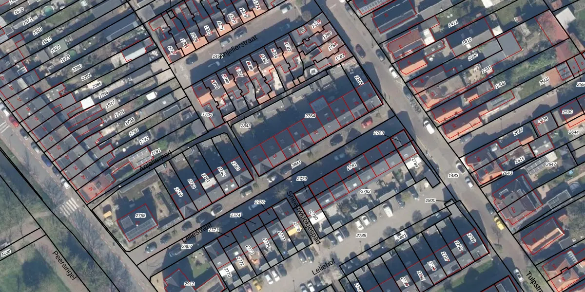 Het perceel waarop Leliestraat 16 staat heeft een oppervlakte van 835 m². Dit is een groot perceel. De perceeloppervlakte wordt geregistreerd door het Kadaster. Gedetailleerde informatie over de maten van dit perceel kunt u vinden in het rapport Kadastrale kaart met maatvoering van Leliestraat 16.