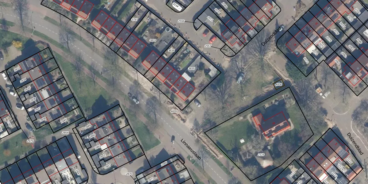 Het perceel waarop Linnaeuslaan 86 staat heeft een oppervlakte van 713 m². Dit is een groot perceel. De perceeloppervlakte wordt geregistreerd door het Kadaster. Gedetailleerde informatie over de maten van dit perceel kunt u vinden in het rapport Kadastrale kaart met maatvoering van Linnaeuslaan 86.