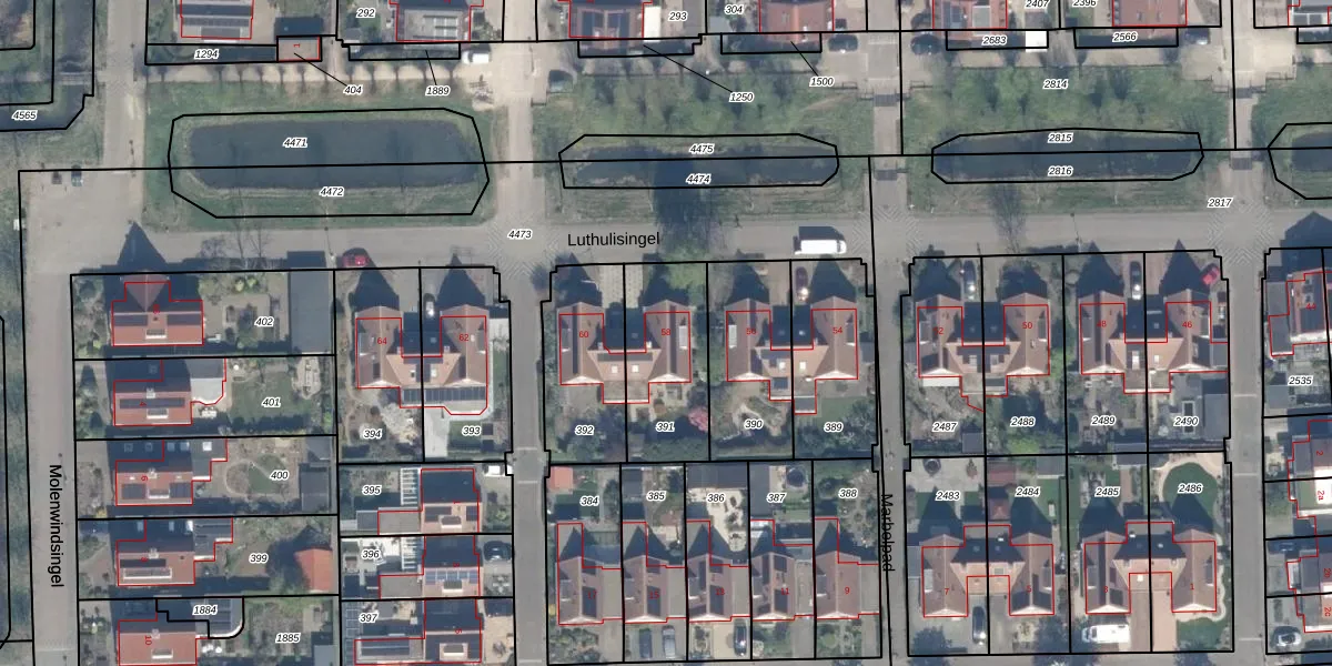 Het perceel waarop Luthulisingel 58 staat heeft een oppervlakte van 373 m². Dit is een groot perceel. De perceeloppervlakte wordt geregistreerd door het Kadaster. Gedetailleerde informatie over de maten van dit perceel kunt u vinden in het rapport Kadastrale kaart met maatvoering van Luthulisingel 58.