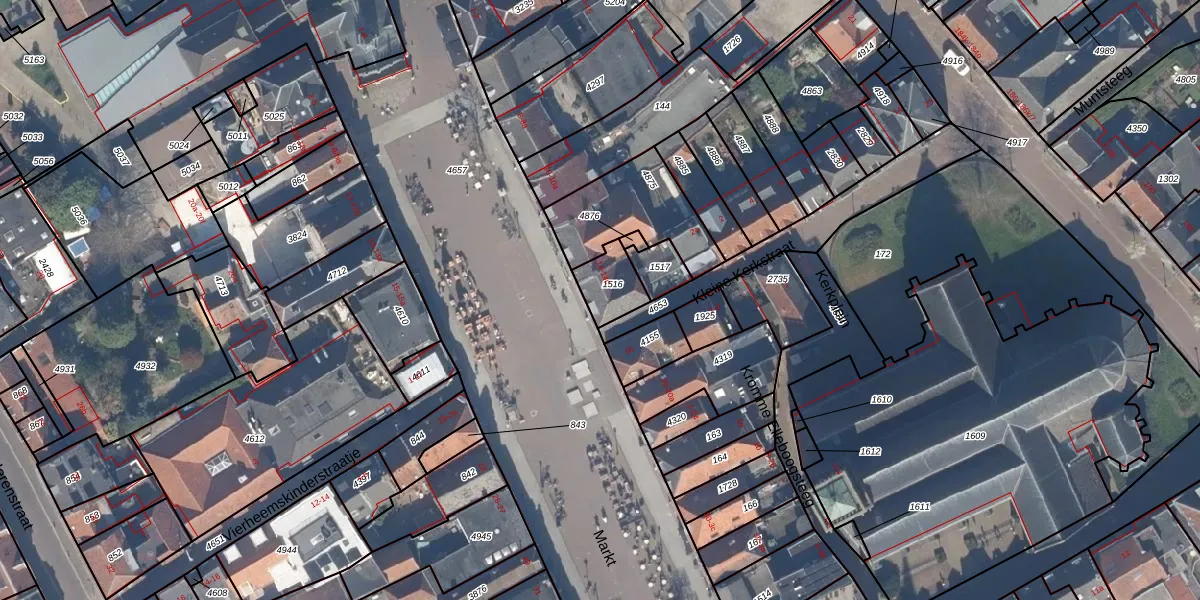 Het perceel waarop Markt 14-b staat heeft een oppervlakte van 115 m². Dit is een middelgroot perceel. De perceeloppervlakte wordt geregistreerd door het Kadaster. Gedetailleerde informatie over de maten van dit perceel kunt u vinden in het rapport Kadastrale kaart met maatvoering van Markt 14-b.