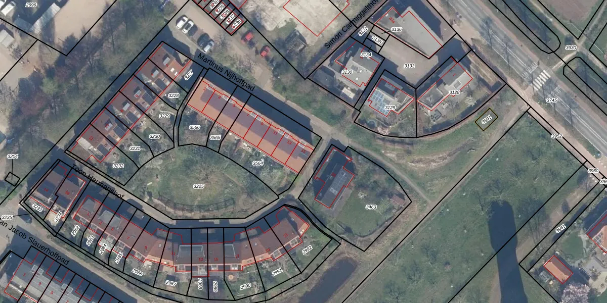 Het perceel waarop Martinus Nijhoffpad 15 staat heeft een oppervlakte van 605 m². Dit is een groot perceel. De perceeloppervlakte wordt geregistreerd door het Kadaster. Gedetailleerde informatie over de maten van dit perceel kunt u vinden in het rapport Kadastrale kaart met maatvoering van Martinus Nijhoffpad 15.