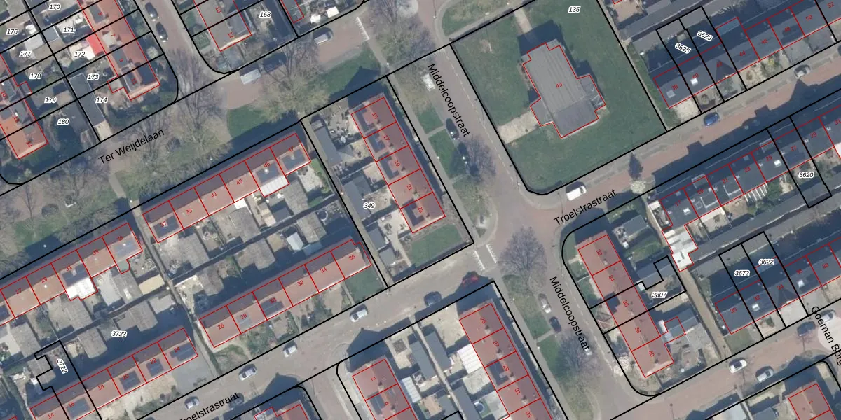 Het perceel waarop Middelcoopstraat 23 staat heeft een oppervlakte van 1037 m². Dit is een zeer groot perceel. De perceeloppervlakte wordt geregistreerd door het Kadaster. Gedetailleerde informatie over de maten van dit perceel kunt u vinden in het rapport Kadastrale kaart met maatvoering van Middelcoopstraat 23.