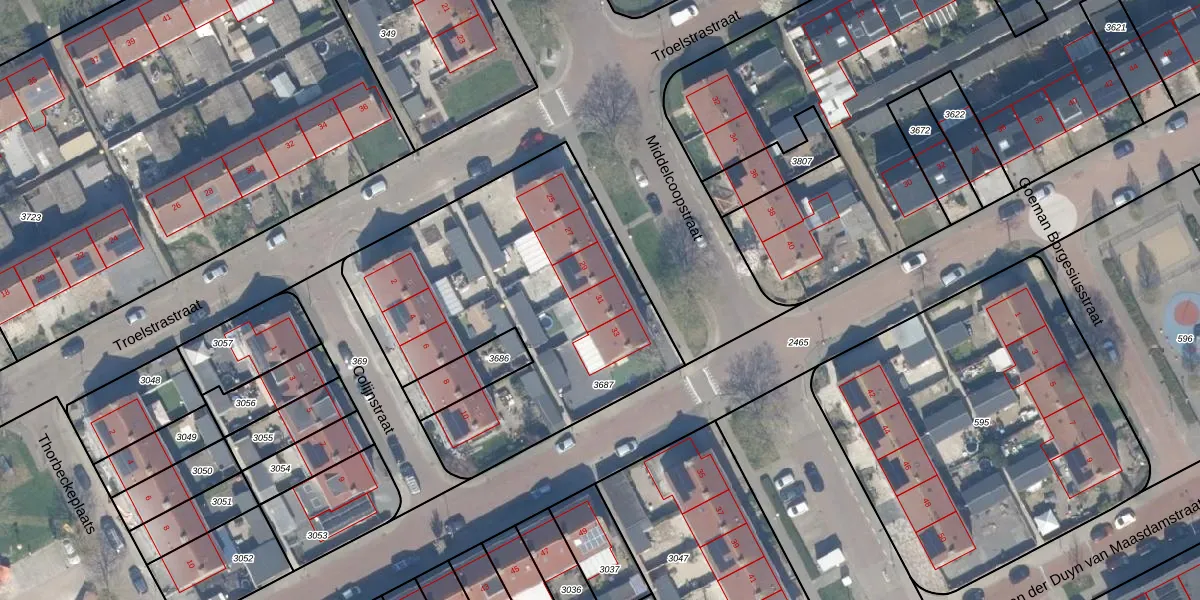 Het perceel waarop Middelcoopstraat 31 staat heeft een oppervlakte van 1682 m². Dit is een zeer groot perceel. De perceeloppervlakte wordt geregistreerd door het Kadaster. Gedetailleerde informatie over de maten van dit perceel kunt u vinden in het rapport Kadastrale kaart met maatvoering van Middelcoopstraat 31.