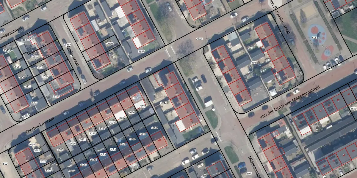 Het perceel waarop Middelcoopstraat 37 staat heeft een oppervlakte van 991 m². Dit is een groot perceel. De perceeloppervlakte wordt geregistreerd door het Kadaster. Gedetailleerde informatie over de maten van dit perceel kunt u vinden in het rapport Kadastrale kaart met maatvoering van Middelcoopstraat 37.