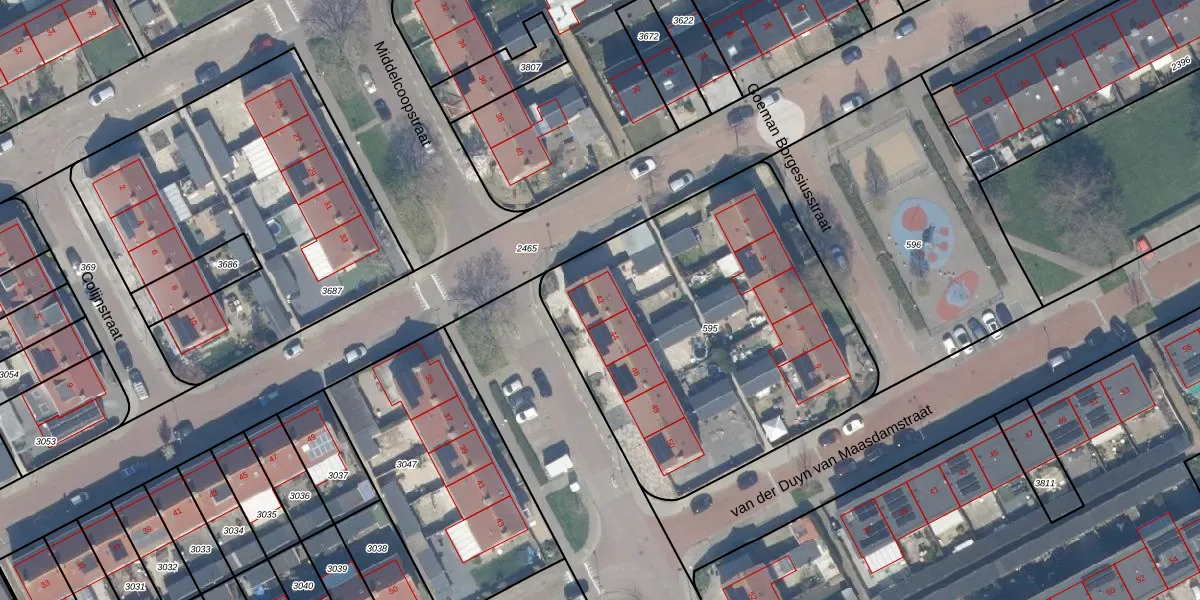 Het perceel waarop Middelcoopstraat 42 staat heeft een oppervlakte van 1915 m². Dit is een zeer groot perceel. De perceeloppervlakte wordt geregistreerd door het Kadaster. Gedetailleerde informatie over de maten van dit perceel kunt u vinden in het rapport Kadastrale kaart met maatvoering van Middelcoopstraat 42.