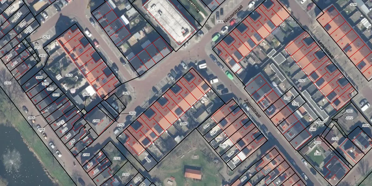 Het perceel waarop Nieuwstraat 66 staat heeft een oppervlakte van 1218 m². Dit is een zeer groot perceel. De perceeloppervlakte wordt geregistreerd door het Kadaster. Gedetailleerde informatie over de maten van dit perceel kunt u vinden in het rapport Kadastrale kaart met maatvoering van Nieuwstraat 66.