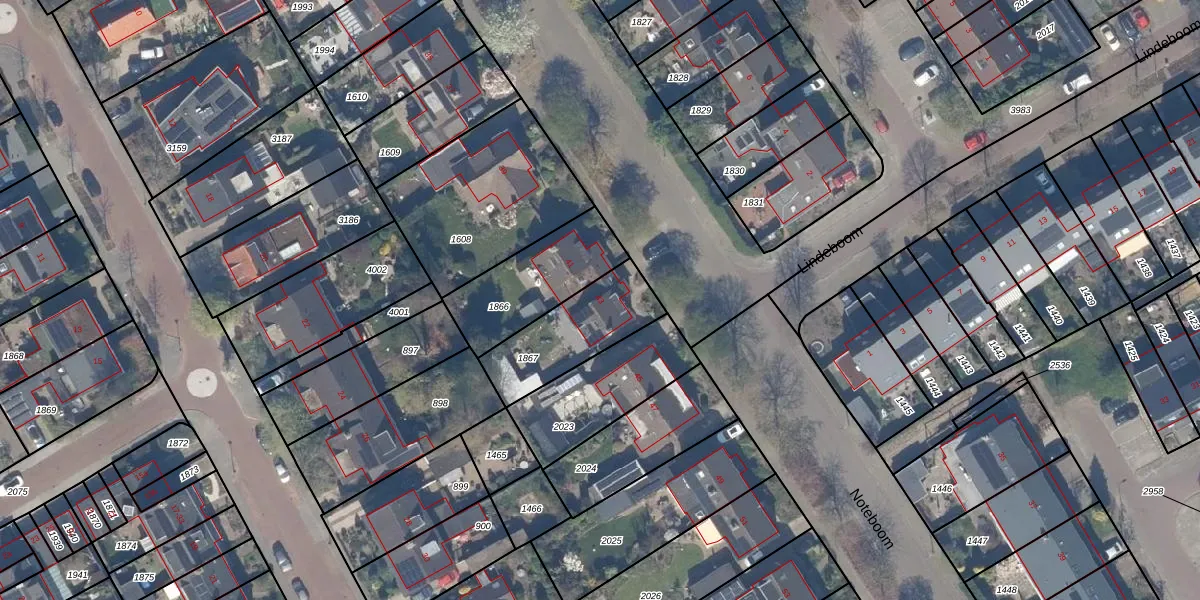 Het perceel waarop Noteboom 43 staat heeft een oppervlakte van 322 m². Dit is een groot perceel. De perceeloppervlakte wordt geregistreerd door het Kadaster. Gedetailleerde informatie over de maten van dit perceel kunt u vinden in het rapport Kadastrale kaart met maatvoering van Noteboom 43.