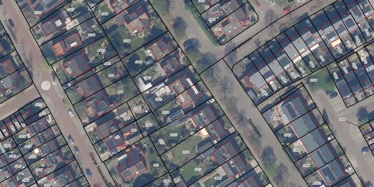 Het perceel waarop Noteboom 47 staat heeft een oppervlakte van 331 m². Dit is een groot perceel. De perceeloppervlakte wordt geregistreerd door het Kadaster. Gedetailleerde informatie over de maten van dit perceel kunt u vinden in het rapport Kadastrale kaart met maatvoering van Noteboom 47.