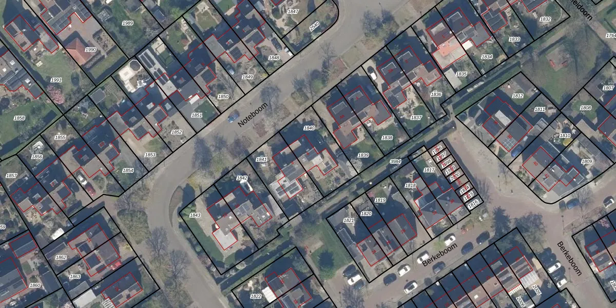 Het perceel waarop Noteboom 6 staat heeft een oppervlakte van 355 m². Dit is een groot perceel. De perceeloppervlakte wordt geregistreerd door het Kadaster. Gedetailleerde informatie over de maten van dit perceel kunt u vinden in het rapport Kadastrale kaart met maatvoering van Noteboom 6.